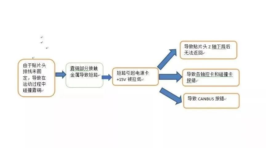 7、觀察發現,貼片頭只有在運動過程中才會出現故障現象。而貼片頭靜止不動,則不會出現故障現象,貼片機同時報CANBUS超時。而懸臂和貼片頭上和CANBUS有關的主要是排線和頭板。頭板是相對貼片頭靜止的,不會隨其運動而晃動,而排線會隨著貼片頭的運動而晃動。根據以往的維修經驗,貼片頭是運動部件,而貼片頭上的排線損傷概率遠遠大于靜止不動的部件。