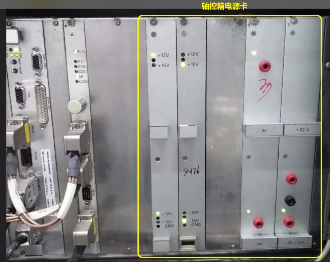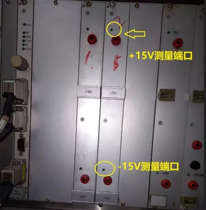 5、用萬用表量測機器在報錯時軸控箱各電源卡輸出,發現15V電源卡無+15V輸出,并且相應的指示燈也不亮。