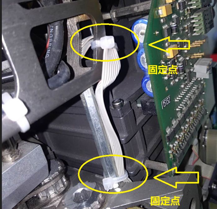 2、S系列貼片機由于機器設計問題,三個步進馬達(取料馬達,拋料馬達,DP馬達)的排線存在磨損的風險,并且排線位于貼片頭和頭架之間,位置比較隱蔽,發生磨損不能被及時發現。因此需使用扎帶將其固定在頭架上,并且需要加入到PM作為檢查項目。