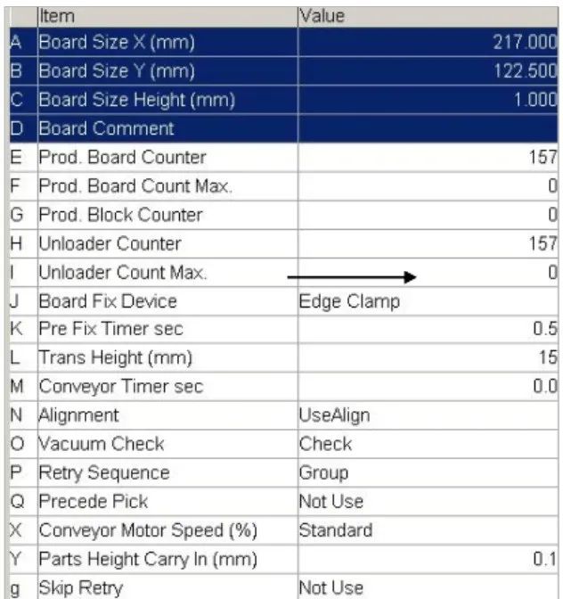 Prod. Board Counter MAX:以整塊 PCBA 計算的計劃產(chǎn)量,機器產(chǎn)量達到該值后會出現(xiàn)報警提示產(chǎn)量完成, 設為 0 則表示無窮大.