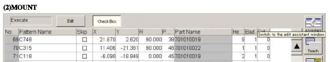 Skip: 某個元件“Skip”欄的“口”內(nèi)打上“X”表示該元件被跳過,不會貼裝.